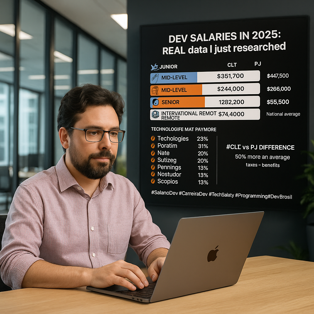 Como desenvolvedor senior, recebo constantemente perguntas sobre faixas salariais e perspectivas de carreira. Decidi fazer uma análise profunda dos dados mais recentes do mercado brasileiro de tecnologia em 2025.